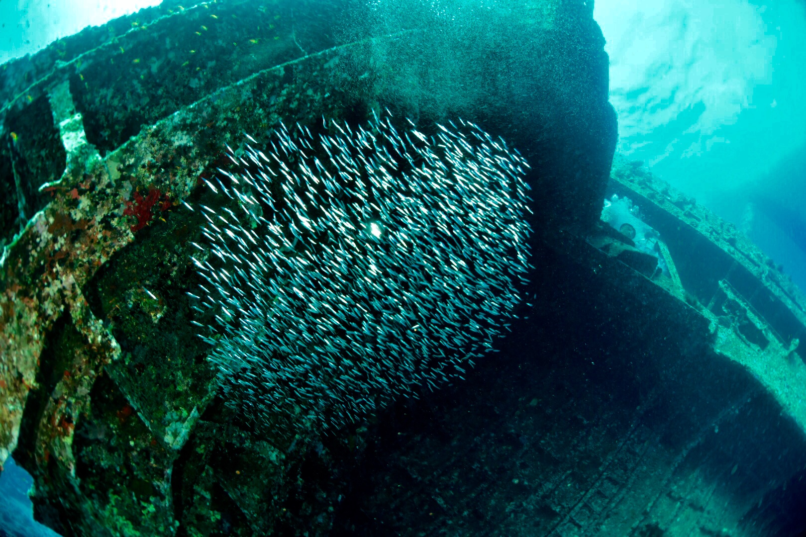De contouren tekenden zich af in het blauwe water, en tussen de stalen ribben hadden vissen en koralen een nieuwe leefwereld opgebouwd.